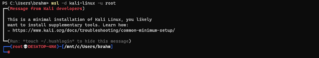 Dalam hal ini pada list yang saya punya ada 2 distro linux yang terpasang pada WSL saya, Ubuntu & Kali Linux. Kemudian untuk melakukan akses nya dengan cara :